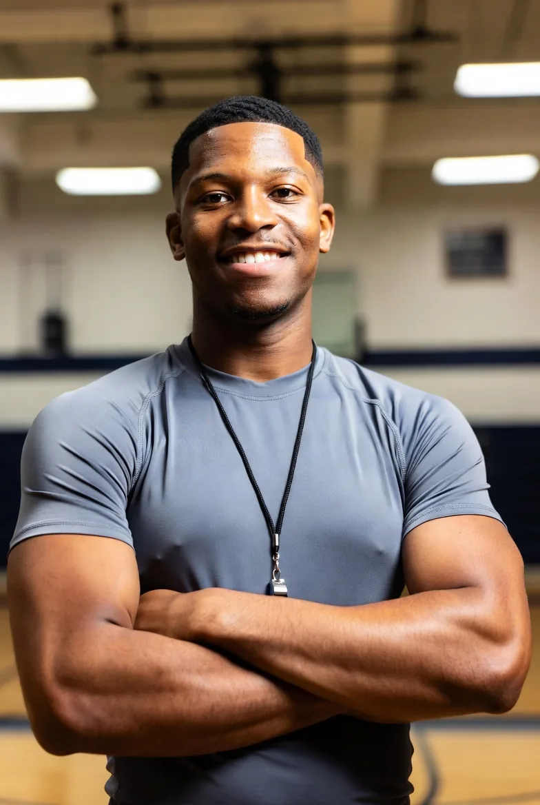 Coach voice, rolled sleeves, patient praise, and the kind of grounded masculine focus that makes “let me guide you” land hard.
